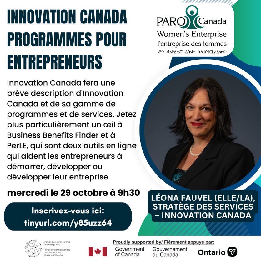 Innovation Canada fera une brève description d’Innovation Canada et de sa gamme de programmes et de services. Jetez plus particulièrement un œil à Business Benefits Finder et à PerLE, qui sont deux outils en ligne qui aident les entrepreneurs à démarrer, développer ou développer leur entreprise.